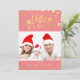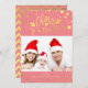Bakgrunden till Färg kan anpassas till Onlinen till vilken Färg som helst! Guld Faux Foil Polka dots Cheers till ett nyårstidsskript för kallgrafi med Guld Chevron Rand Helgdag Blating Family Photo Card. Fira säsongen med detta moderna och Snyggt Helgdagskort.
