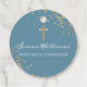 Guld Dusky Blue Blommigt First Communion Tack Favor Tags (favorittaggar)