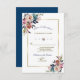 Elegant med delikat dammblått, mistigt ro vattenfärgad blommigt bouquets, faux guld foil ram, på vit bakgrund, handskriftstypografi, och även på baksidan en marin blå bakgrund. Ett underbart val för alla säsonger i bröllop, särskilt för höst- eller vinterbröllop. Använda Anpassa verktyg om du vill lägga till information och ändra typsnitt färg. Om du vill ha matchande artiklar kan du besöka min Dusty Blue Misty Ro Flowers Collection.