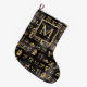 Guld-egyptiska hieroglyfer på svarta Monogram Stor Julstrumpa