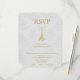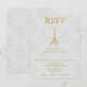 Skicka gästerna en enkel och elegant Guld Eiffel Torn Damask Wedding-OSA kort med din inbjudan. OSA kort är utformat för Eiffel Torn mot en känslig bakgrund från snöre i dammen. Anpassa med svarsdatum och menyval. Ytterligare bröllop-förråd finns även med den här utformningen.