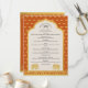 Väv elegans och tradition in i din hinduiska vigselceremoni med våra personliga vigselprogramkort. Framsidan visar en vacker elefant- och guldlotusblomsdesign, tillgänglig i sex fängslande färger (röd, orange, blå, lila, rosa och kolgrå) för att komplettera ditt vigseltema. All text på programmet kan anpassas, så att du kan inkludera händelseförloppet för din hinduiska vigselceremoni på framsidan och en detaljerad förklaring av Saptapadi (de sju stegen) på baksidan. Detta utsökta program kommer inte bara att guida dina gäster genom ceremonin utan också fungera som en skattad souvenir som de kan minnas.