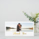 Skicka ut ditt tack till bröllop när du nyligen hälsar dina vänner och din familj med hjälp av den här eleganten, ett modernt tackkort med ord "Tack" skrivet i ett handskriftsskript i guld (tryckt fotoeffekt) med fetstil. Utformning av Elke Clarke© finns på www.zazzle.com/monogramgallery. Byt ut exempelfotot mot ett eget bröllop-foto. Annan tillgänglig färg.
