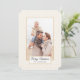 Ett vackert guld mönstrade ram som omger ditt foto med ett handskrivet meddelande om "God jul". Har ett stort foto på framsidan med plats på baksidan så att du kan lägga till ditt personliga meddelande eller fler foton om du vill. Vit och guld cirkelformad punkt mönster är modern och elegant i neutralt för att matcha vilket foto som helst.