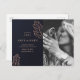 Tunga och guld elegant bröllop sparar datumet med botaniskt inslag. Utskrivet vykort innehåller inte äkta folie eller miniatyrdiagram. Kontakta mig om du behöver fler artiklar.