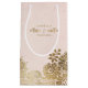 Elegant vintage blommigt snöre med ett par namn i Shimmery faux guld foil på mjuk rosa, chic och romantisk, underbarare för modern vintage bröllop.