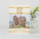 Eleganta anpassade 50-årsjubileum Festinbjudningar -- Dekorativa vintage guldaccent på elfenbensvit bakgrund med fotoram och klassisk antikk monogram. Lägg till ditt eget foto och anpassa namnet, datumet och detaljerna för din speciella jubileumsfirande. Matchande kuvert, porto och tackkort tillgängliga. **OBS: Storlek för SMÅ 4,25 x 5,5 inbjudningskort. Andra storlekar och stilar finns i galleriet.
