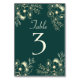 Styra gästerna i stil med det här elegant bröllop-bordsnumret-kortet som innehåller en rik med bakgrundsbild av grönten, delikata illustrationer av blommigten i guld och tidlös serif-typografi. Perfekt för formella mottagningar, vinterbröllop eller luxurious emerald- och guld-teman, detta kort parar vackert med guld ramar och ljussken bord. Fullständigt anpassade för dina bordsnummer eller din signage - perfekt för chic, klassisk eller vintage-inspirerad bröllop-dekor.