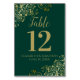 Dessa vackra kort för bordsnummer i bröllop har en enkel utformning av eleganten med manusgrafi i guld på en frammarsch grönt med ett faux-folie i guld med blommigt i hörnen. Perfekt för att göra din bröllopsmottagning vacker och hjälpa dina gäster att hitta högerna bord samtidigt.