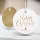 Personliga julpresentkort har stor falsk guld folie handskriven kalligrafi och julgran, enkel, modern och elegant.