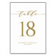 Lägg till en guld-och vit elegant-accent i din händelse med de här bordsnummer-korten för anpassadet. Den har ett enkelt kalligrafiskt skript och klassisk typografi i guld. Anpassa genom att lägga till namn, data och bordsnummer. Det här enkla manuskortet är perfekt för bröllop, möhippor, babyduschar och så mycket mer.