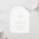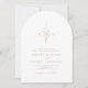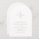 Minimalistisk faux-bröllopsinbjudan för guld och vitt bågbröllop, med ditt monogrammade initialer och handillustrerade botaniskt löv överst, visas dina händelsedetaljer nedan i modernt skript och klassiskt teckensnitt. Enkel och lyx. Underbar för det moderna klassiska bröllop, rent formellt bröllop, elegant botaniskt trädgårdsbröllop. Visa alla matchande delar i samlingen.