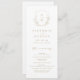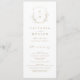 Monogrammad initialer inramad av elegantens vapensköld och handillustrerad botaniskt löv, din händelseinformation i elegantens skript och klassiskt teckensnitt, enkelt och lyxt. Underbara faux guld- och vita program för modernt klassiskt bröllop, rent formellt bröllop, elegant botaniskt trädgårdsbröllop. Visa alla matchande delar i samlingen.
