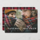 Guld et-tecken foto spara datum med röd rutig baksida. Baksidans färg kan anpassas. Del av en samling.