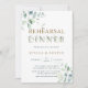 Den här inbjudan till repetitionsmiddagen i bröllop innehåller färgade vattenfärgade eukalyptus och grönt löv med botaniska guld brev.