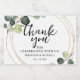 Elegant eukalyptusgrönska med guld cirklar som ramar in skrift och klassisk typografi " tack " för bröllop, brud shower, förlovningsfirande eller fest.