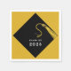 Kreativa examensfest servetter för klass 26 studenter med rolig text och klassisk svart examensmössa med guldtofs på guldbakgrund.