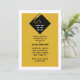 Kreativa examensinbjudningar med klassisk svart examensmössa på guldbakgrund.