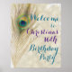 Guld Exotisk Påfågel Fjäder Glam Fest Banner/Plakat. Anpassa med valfri text. Matchande föremål i min butik.