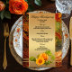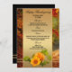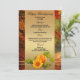 Menykort för elegantens fall med en pumpa med solros på en guld-stiliserad bakgrund med skogsbild. Snygg för Thanksgiving eller firande till hösten.