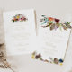 Den här guld-luddboho-blommigten inför och bakom bröllopsinbjudan är perfekt för ett rustiskt bröllop. Utformningen har handmålade bruna fjädrar, boho-gult, vit, lila, rosa, , burgundblommor och blåbär som är snyggt placerade i vackra buketter. Spara papper genom att på baksidan av inbjudan ange mer information i stället för på ett separat visitkort.
