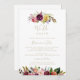 Den här blommigten med guld ludder boho, som vi återigen gör med inbjudan till förnyelse, är perfekt för en modern händelse. Utformningen har handmålade bruna fjädrar, boho-gult, vit, lila, rosa, , burgundblommor och blåbär som är snyggt placerade i vackra buketter.