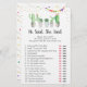 Dessa eleganta Han sa hon sa-kort är en rolig aktivitet på bröllopsfesten. Dela bara ut dem under bröllopsfesten där gästerna kommer att ha kul att gissa vem som sa varje påstående. Du kan till och med anpassa fraserna! Designen har vattenfärgssucculenter med guldglitter och färgglada fiestaflaggor.