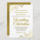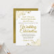 Den vackra bröllopsinbjudan är snyggt, enkel och elegant. Den har guld-skriptbokstäver på en vit bakgrund med blommigt-faux-foliefiligree i varje hörn. Den understrukna utformningen kompenseras av konstverkets normala kylfrys och virvlar. Baksidan är ett djupt marmorerat guld färg med ett anpassade QR-kod och en detaljanteckning så att du kan skicka dina gäster till en webbplats för information och OSA.