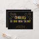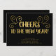 Ring in det nya året med stil med denna svarta och (falska) guld nyårsafton inbjudan. Denna typografiska design har frasen "Skål för det nya året" i falskt guld penselbrev font, mot en solid svart bakgrund. Detaljer om din fest finns längst ner på inbjudan i guld.