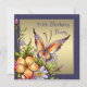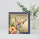 Marinblå med guldbakgrund och vackra vilda blommor och fjäril kvinna 50-årsfirande inbjudan. Anpassa med dina festdetaljer och typsnitt och färg, och du kan också ta bort texten på framsidan.