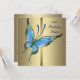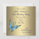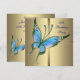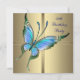 Elegant guld med vacker turkosblå och lila fjäril kvinnas 50-års födelsedagsinbjudan.