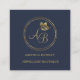 Modern och snyggt affärskort med guldfjäril och initialer i ett cirkulärt ram med mörk blått bakgrund. Underbar för smyckesformare, skönhetssaloner, mode boutiques och snyggt professionell.