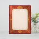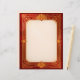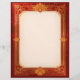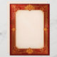 En guld, konst deco ram med fläkt motiv på ruby red bakgrund gör att eleganten skriver ut perfekt för korrespondens, flygblad och inbjudningar. Baksidan är solid tan i samma skugga som framsidan.