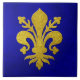 Guld Fleur-de-lis Blue Background Kakelplatta