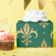 Guld fleur-de-lis sömlös mönster på grönten presentpapper