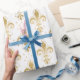 Guld fleur-de-lis sömlös mönster på vitt presentpapper