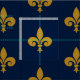 Med en djup marinblå bakgrund och den guld- fleuren de lis, är detta tyg både tidlöst och elegantt.