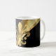 Guld fleur de lys på svart kaffemugg