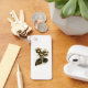 Guld blomfjäril med svart smyckesmunkid, dekorerad med guld löv på vit bakgrund.