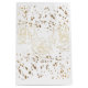 Blommor och stardammkonfekti har en vit och guld-design.