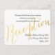 Elegant guld folie glamour | Bröllopsinbjudan - Horisontell layout. Design av Elke Clarke©. Andra stilar och färger finns tillgängliga i vår butik www.zazzle.com/monogramgallery. Ett enkelt handskrivet teckensnitt med ordet "reception" pryder detta klassiska, men moderna, bröllopsinbjudningskort. Texten är helt anpassningsbar. Det guld- och vitrandiga mönstret på baksidan kan tas bort eller så kan en annan färg eller mönster begäras. Levereras med tom vit kuvert. Guld folie är en utskriven fotoeffekt.