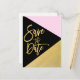 Guld Folie Rosa Svart Modernt Skript Spara Datum Meddelande Vykort