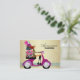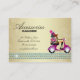 Modetillbehören börs och pryder med ädelsten visitkorten med den roliga sparkcykelkvinnan.