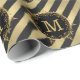 Beställnings- slående in papper för elegant julhelgdag -- Personifiera det med din monogram eller initialer. Stilfulla järnekgrenar och bär, i att bedöva guld- metalliskt för faux, verkställer kranen på svart och guld görad randig bakgrund. Perfekt för att skapa ditt egna speciella handlag för alla minnesvärda gåvor under ditt träd. Koordinera matcha kort, portofrimärken, klistermärkear, moderiktiga gåvor och party favors och tillbehör som är tillgängliga i lager.