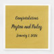 Firar dina nära, vänner eller kolleger med dessa blöjor! "Grattisarna" i ord följs av er hederes namn och speciella datum. Texten är i ett skript med svart pensel (penseldrag), i handskrivet stil, i svart över en bakgrund med guld-ton. Budskapet, namn, och datumet är alla helt och hållet anpassade. Perfekt för bröllop, förlovningsfester eller något gemensamt firande!