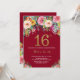 Inbjudan för födelsedag för Burgundy blommigt 16th för kvinnor. Blom- blomma för vattenfärg. Svart och guld- glitter. Rosor gult, orange, lilablomma. Vuxen födelsedag. Behaga klickar "skräddarsy den" knäppas och använder vårt designverktyg för att ändra denna mall för mer ytterligare customization.