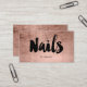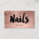 Moderna stilfulla naglar teknikerkonstnär somvisitkorten med modernt räcker bokstäverstil, borstar typografi i svart på en elegant faux rosa guld omkullkastar bakgrund,