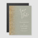 Det moderna magnetkortet i bröllop spara datum från, som är lämnat kant i eleganten, har ett guld faux glitter gräns. Anpassadet kombinerar elfenbenshandskrift, tryckplåt och kursivt typsnitt mot bakgrund av en grönt.