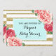 Guld för rosablommaAqua görar randig baby shower Inbjudningar