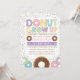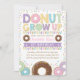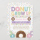 Nyckfull munk-/munktemafödelsedaginbjudan som presenterar illustrationen av smaskiga donuts och färgrika stänk